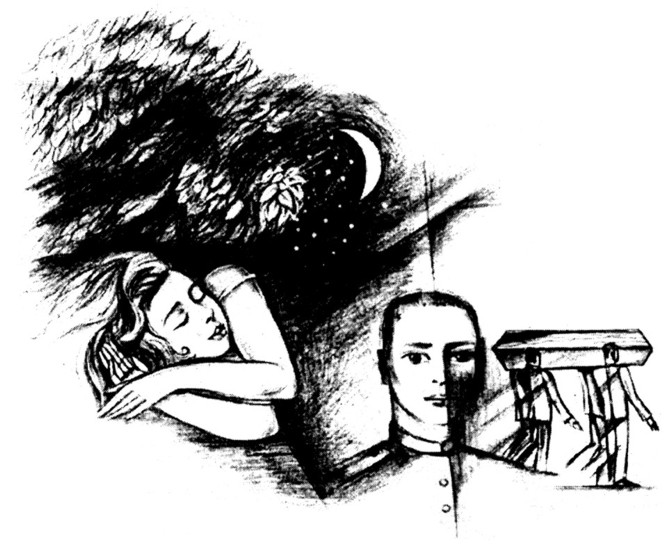 Daleko, daleko kukała kukułka. Wplótł się trel słowika. I jakby za sprawą niewidzialnego dyrygenta, najpierw cicho, stopniowo przybierając na sile, doszedł przeciągły, miękki głos, który śpiewał o migających gwiazdach, o księżycu na niebie, o miłości, od której zamiera serce.